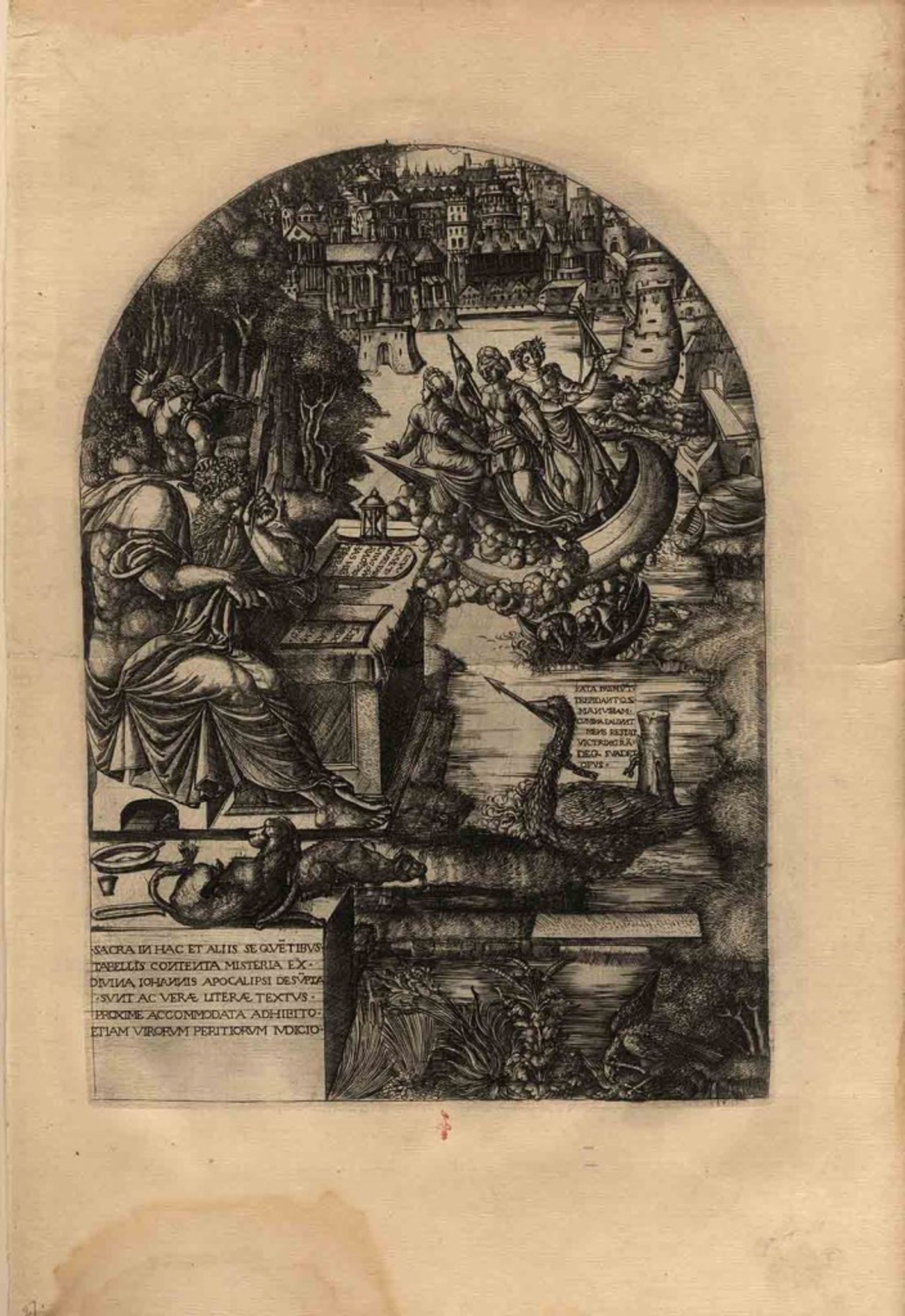 ; SACRA IN HAC ET ALIIS SEQVETIBVS / TABELLIS CONTENTA MISTERIA EX / DIVINA IOHANNIS APOCALIPSI DESVPTA / SUNT AC VERAE LITERAE TEXTVS / PROXIME ACCOMMODATA ADHIBITO ETIAM VIRORVM PERITIORVM IVDICIO