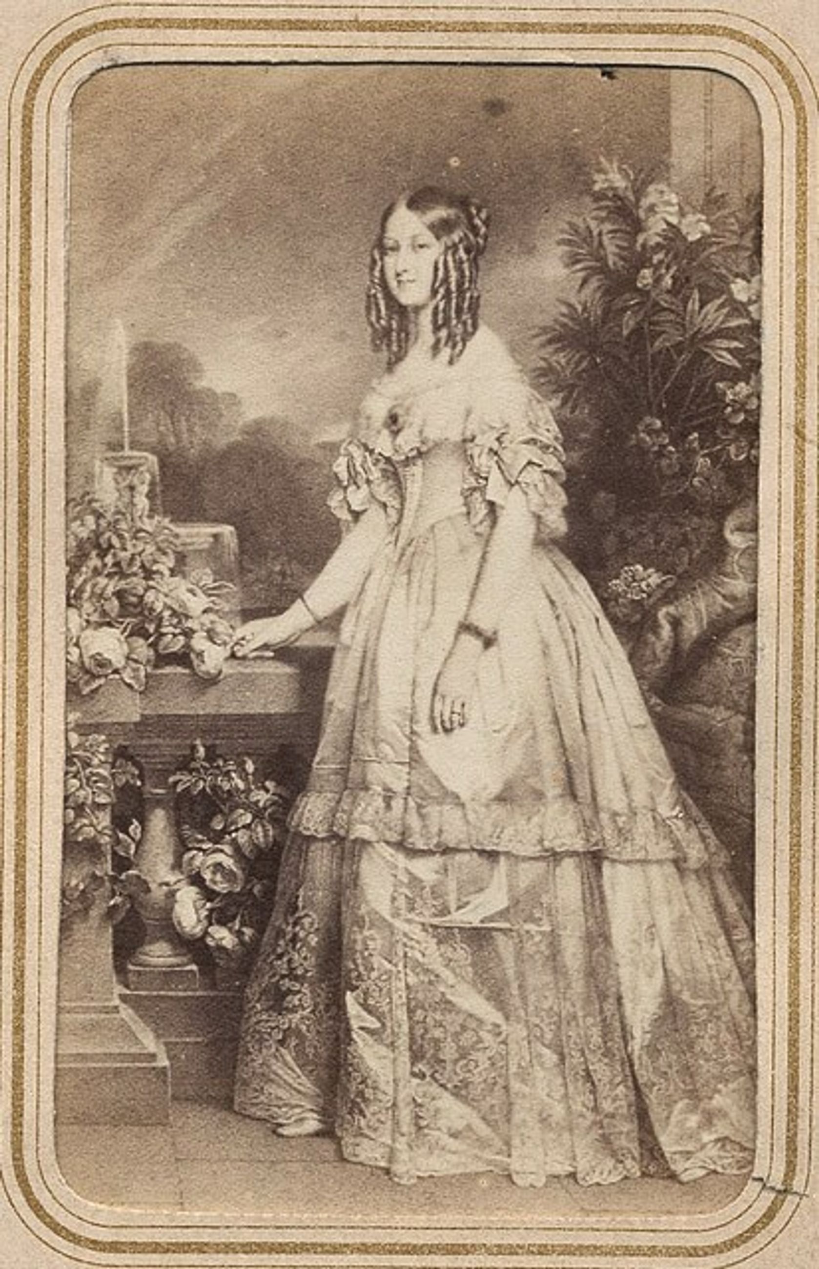 Portrait de Victoire de Saxe-Cobourg-Gotha, duchesse de Nemours (1822-1857), en pied, reproduction de gravure