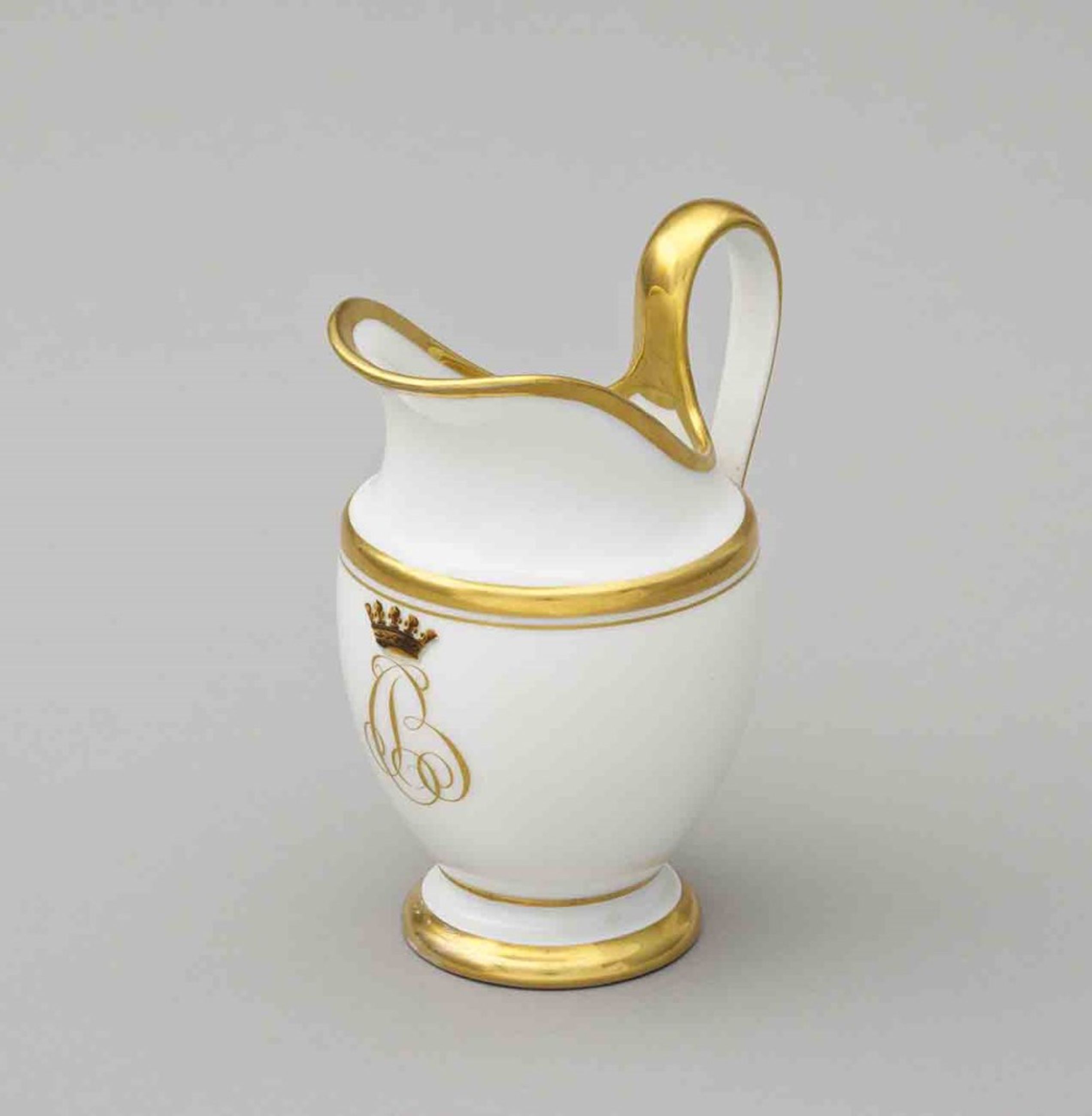 Pot à lait en porcelaine de Paris blanc et or avec filet doré au chiffre de Bourbon-Condé : BC couronné