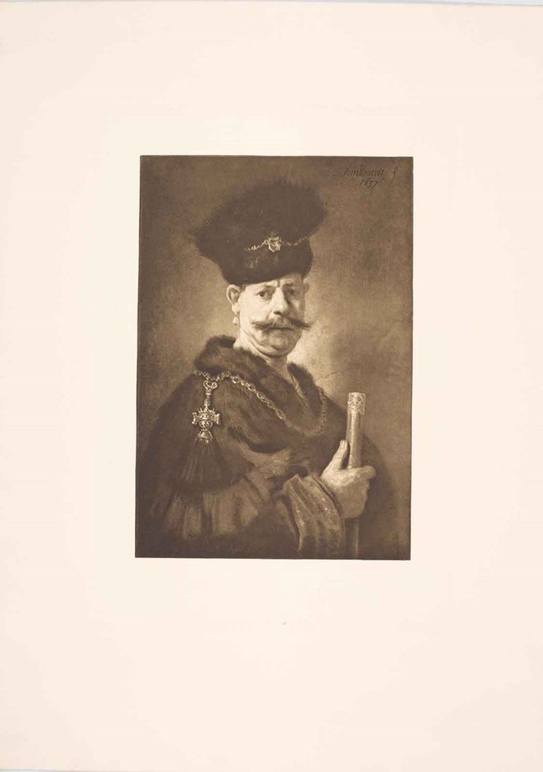 Modèle : tableau, Rembrandt, (Leyde, 1606/7 - Amsterdam, 1669), Un noble Polonais, 1637. Washington, D.C., National Gallery of Art. Ce tableau fut acheté en 1768 par Catherine II de Russie et conservé au Musée de l'Ermitage à Saint-Pétersbourg jusqu’en 1931, quand il a été acheté par Andrew Mellon avant d’être donné à la National Gallery of Art à Washington, D.C. en 1937.