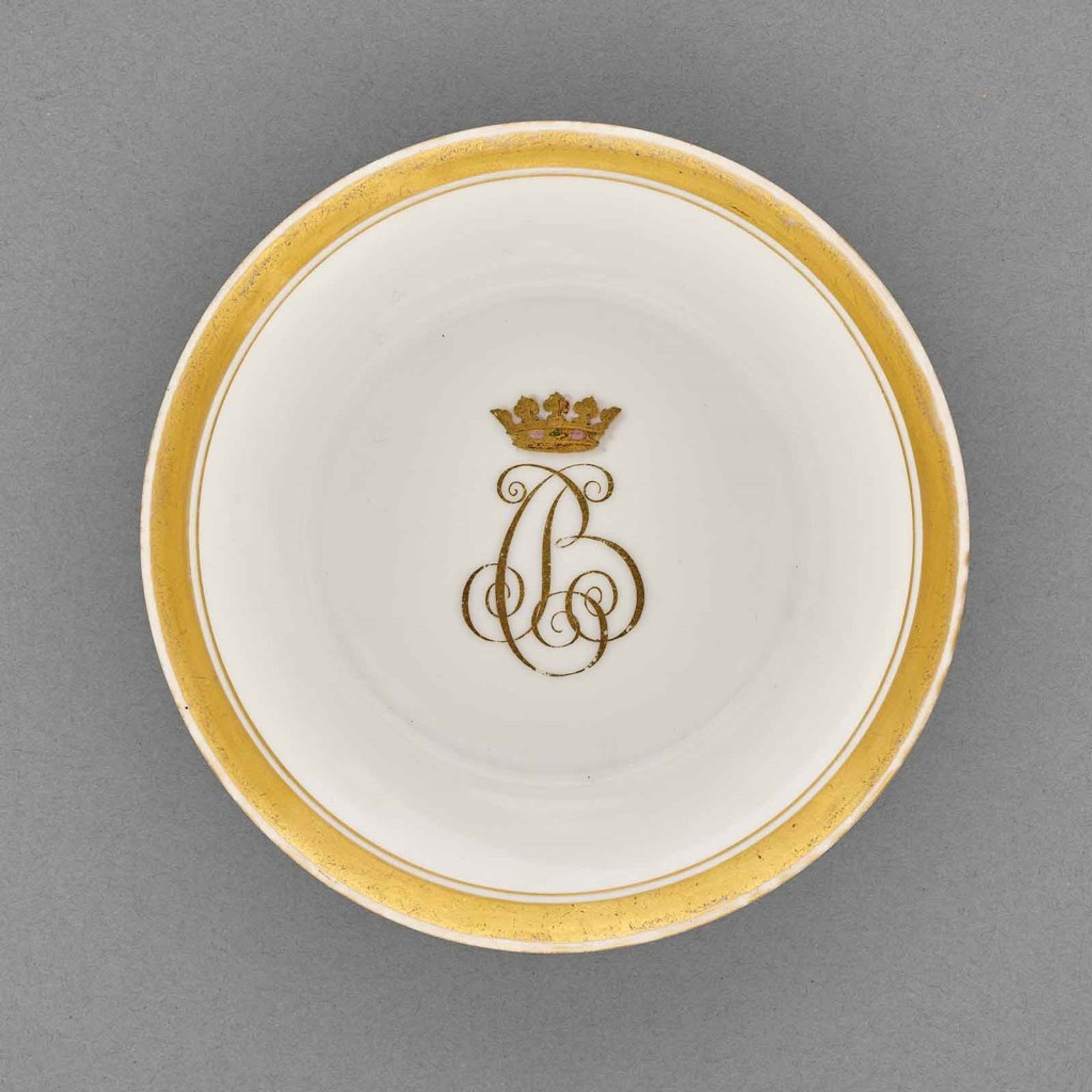 Tasse et sa soucoupe en porcelaine de Paris au chiffre Bourbon-Condé BC doré et couronné - Tasse - Soucoupe