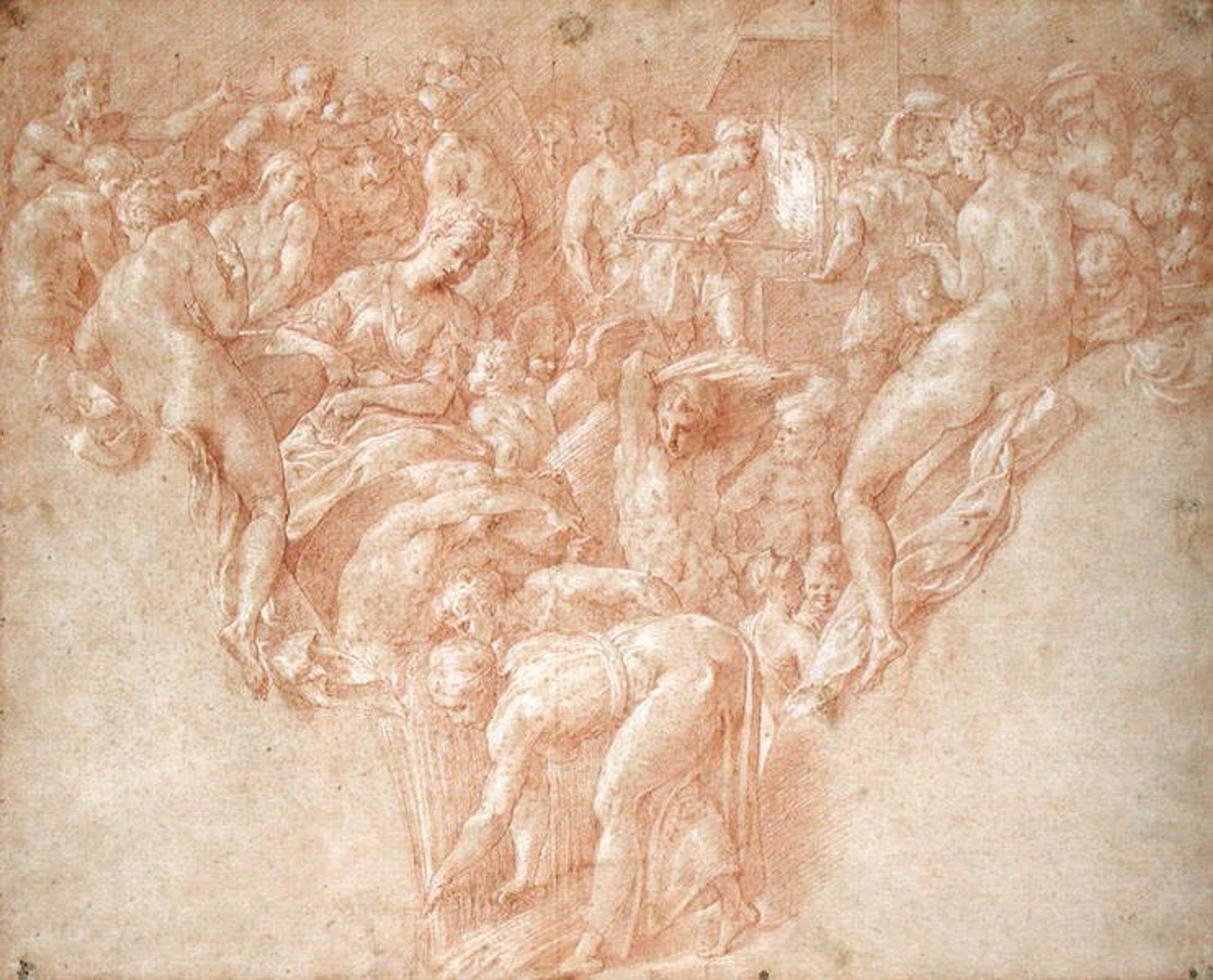 Primatice à la charge de la décoration des murs de la salle de bal du château de Fontainebleau qui représente un ensemble de huit pendentifs dans l'entre-deux des fenêtres. Il est avéré que, si Primatice conçut l'intégralité des compositions pour cette salle, il ne les peignit pas, laissant cette tâche à Nicolo dell'Abate. L'exécution dura environ quatre ans (1552-1556). Deux dessins de Chantilly correspondent à un travail préparatoire : ce dessin et Bacchus ou Les Plaisirs du vin (Inv. 147 (137))