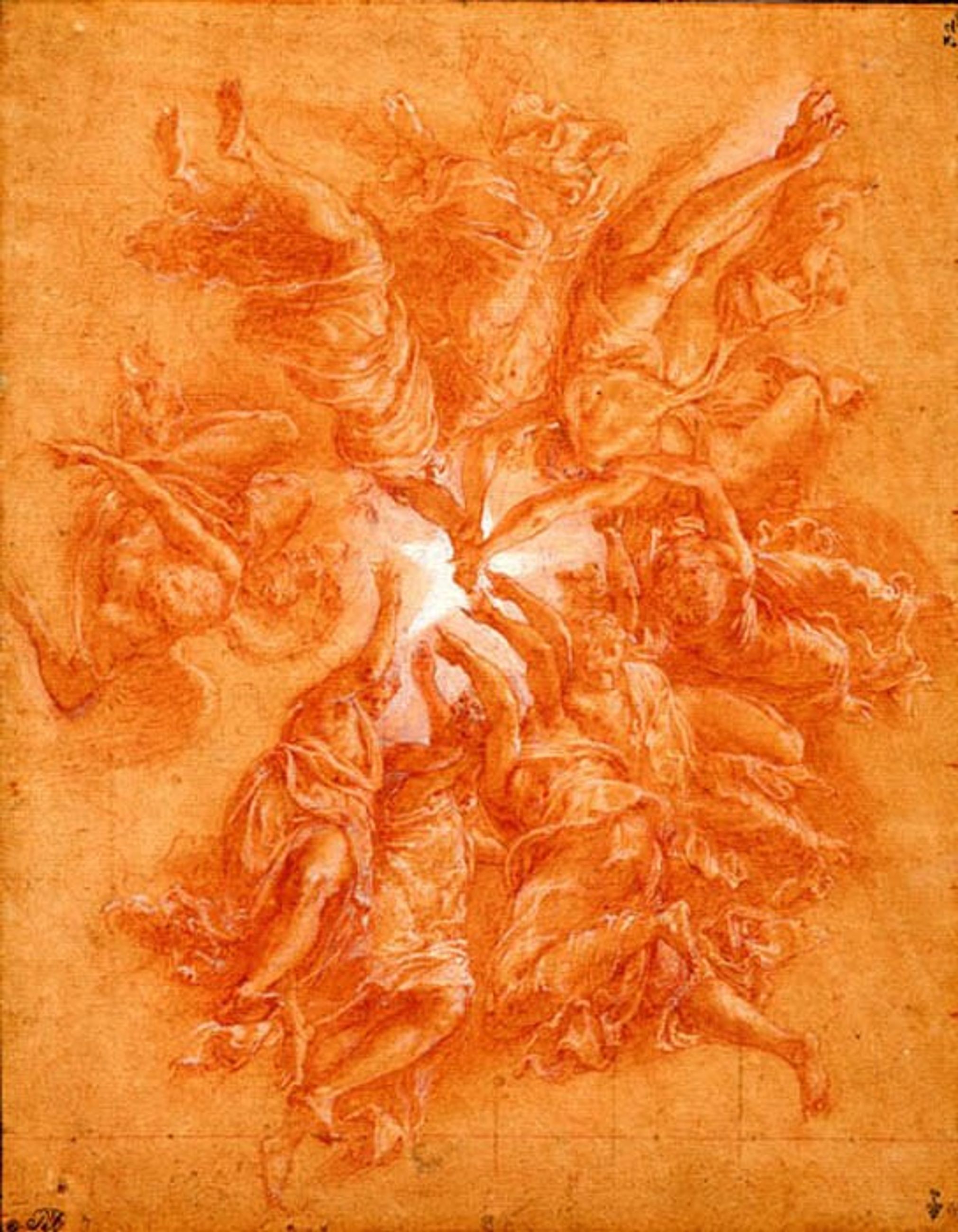 Ce dessin est une étude pour la décoration de la chapelle de l'hôtel des Guise à Paris, que François de Lorraine, duc de Guise, avait confiée à Primatice. Comme l'a montré O. Villard, le projet fut sans doute réalisé par son assistant Nicolo dell'Abate vers 1560.