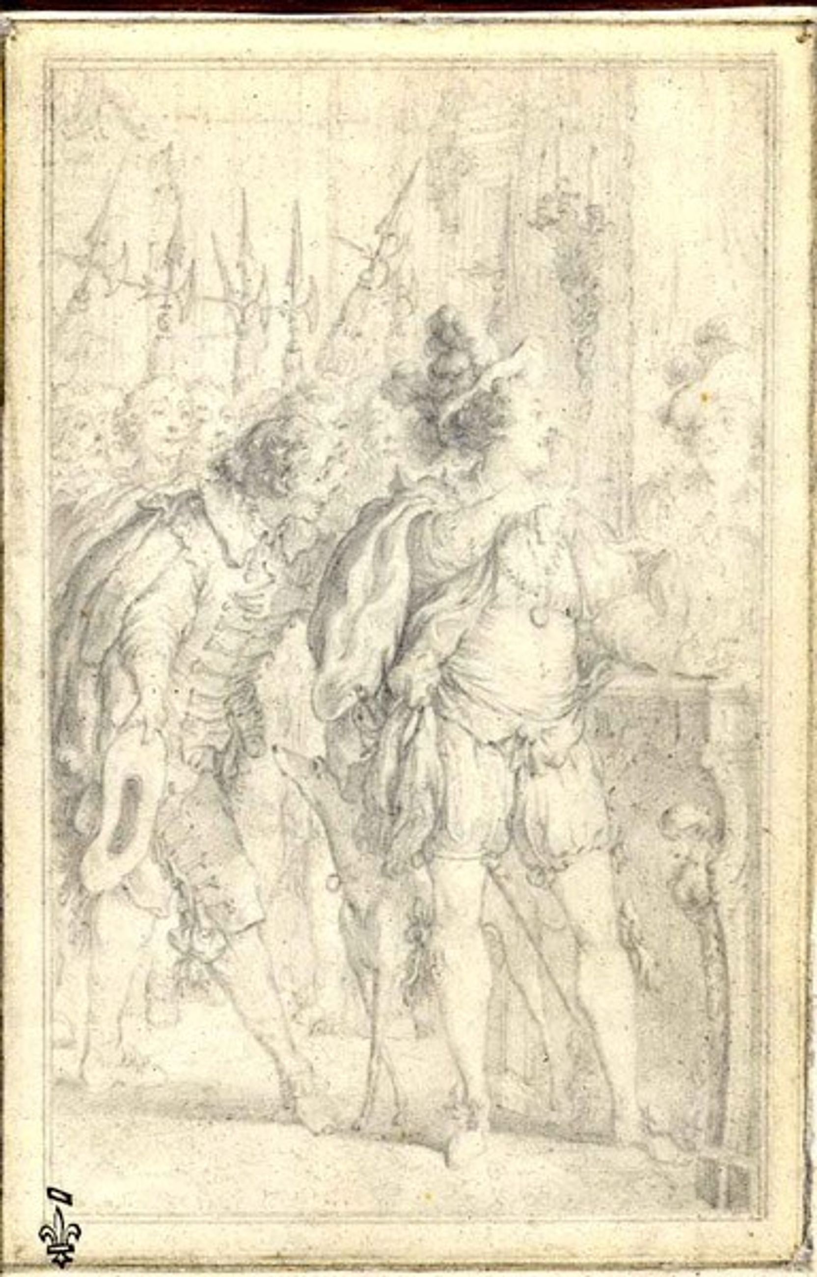 Dessin destiné à l'illustration des Contes de La Fontaine pour l'édition dite des Fermiers généraux publiée en 1762 à Paris.