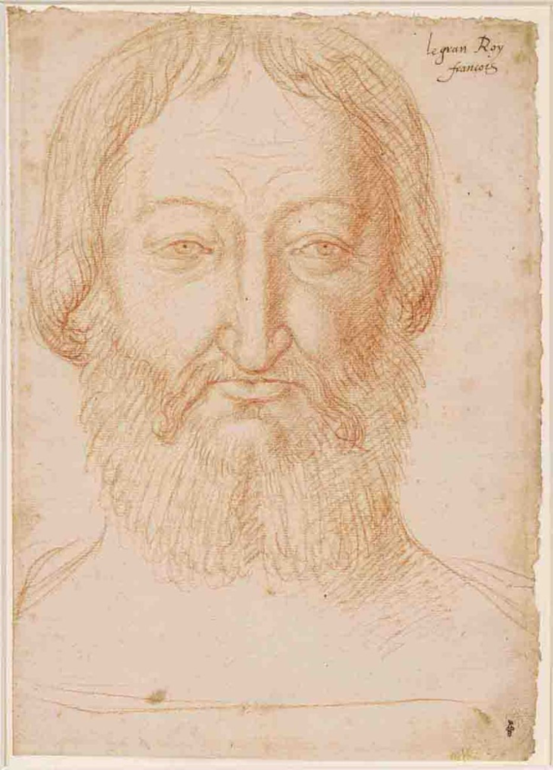 Cette esquisse fut dessinée par François Clouet pour effectuer l'effigie mortuaire en cire du roi décédé en 1547. La composition de ce dessin est très différente des portraits des Clouet. Seule la tête du roi est représentée, de face, elle occupe toute la feuille, et l’artiste n'a utilisé que de la sanguine.