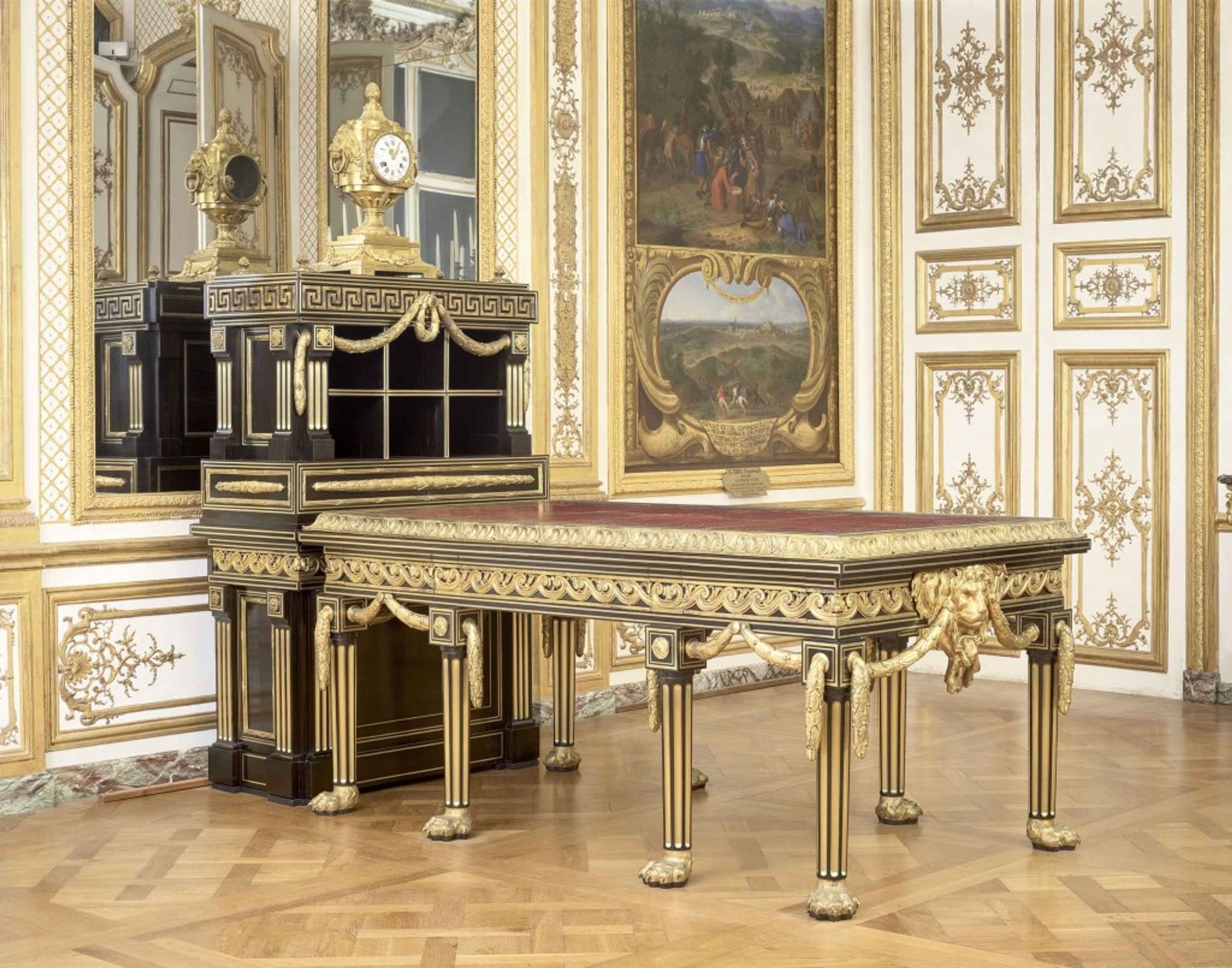 des débuts du néoclassicisme, un meuble « à la grecque». Son exécution est attribuée à l’ébéniste Joseph Baumhauer sur les dessins du peintre Louis-Joseph Le Lorrain (1715-1759).