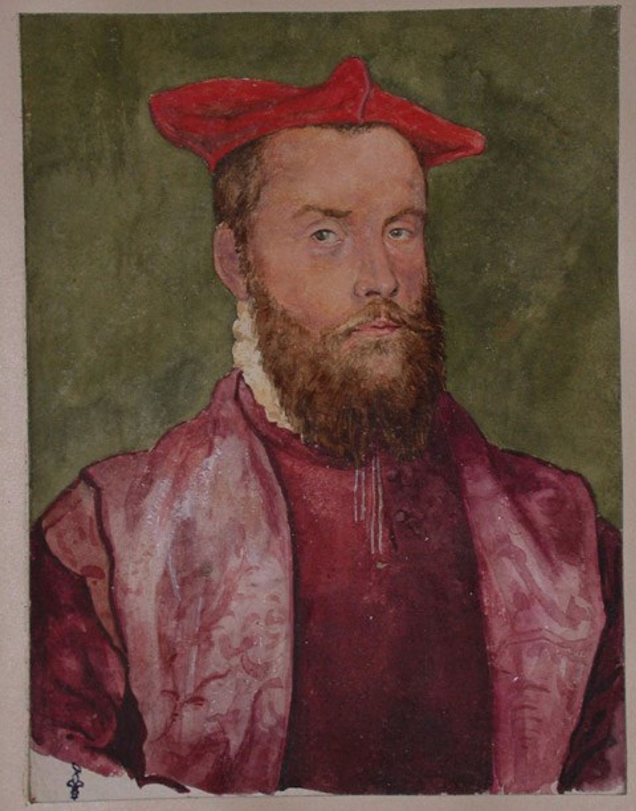; Odet de Coligny / cardinal de Châtillon évêque de Beauvais, copie d’un tableau du château d’Azay-le-Rideau / en 1890 par Marguerite de Biencourt