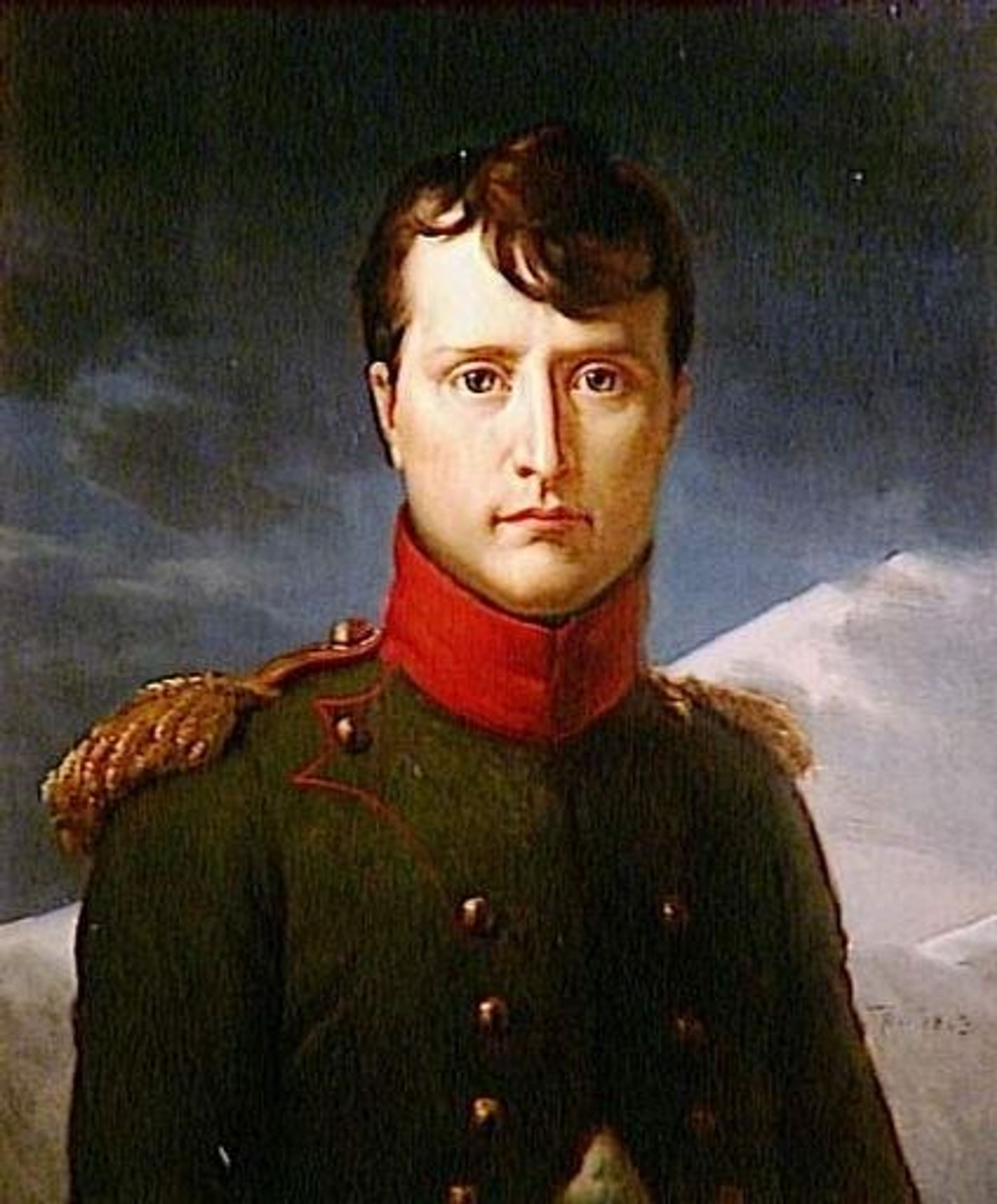 Ce portrait du Premier Consul Bonaparte évoque déjà l’Empereur Napoléon. Véritable prototype des portraits officiels de l’Empereur, le tableau frappe par la simplicité de la pose frontale et l’intensité du regard posé sur le spectateur. Le Premier Consul porte l’uniforme de général en chef. Sa silhouette se détache sur un fond de ciel où s’inscrit en diagonale la pente neigeuse d’une montagne, allusion probable à la traversée des Alpes pendant la campagne d’Italie. On assiste ici à la mise au point d’un portrait officiel, selon la volonté du modèle ; ce type sera ensuite repris et adapté par David dans ses portraits du sacre ; ce n’est plus le profil émacié du vainqueur d’Arcole est ici remplacé par un visage allongé et empreint de dignité, aux angles arrondis ; il semble que Gérard ait ici anticipé sur l’évolution physique de Bonaparte dans un but politique, afin que le futur Empereur corresponde par avance à son image.