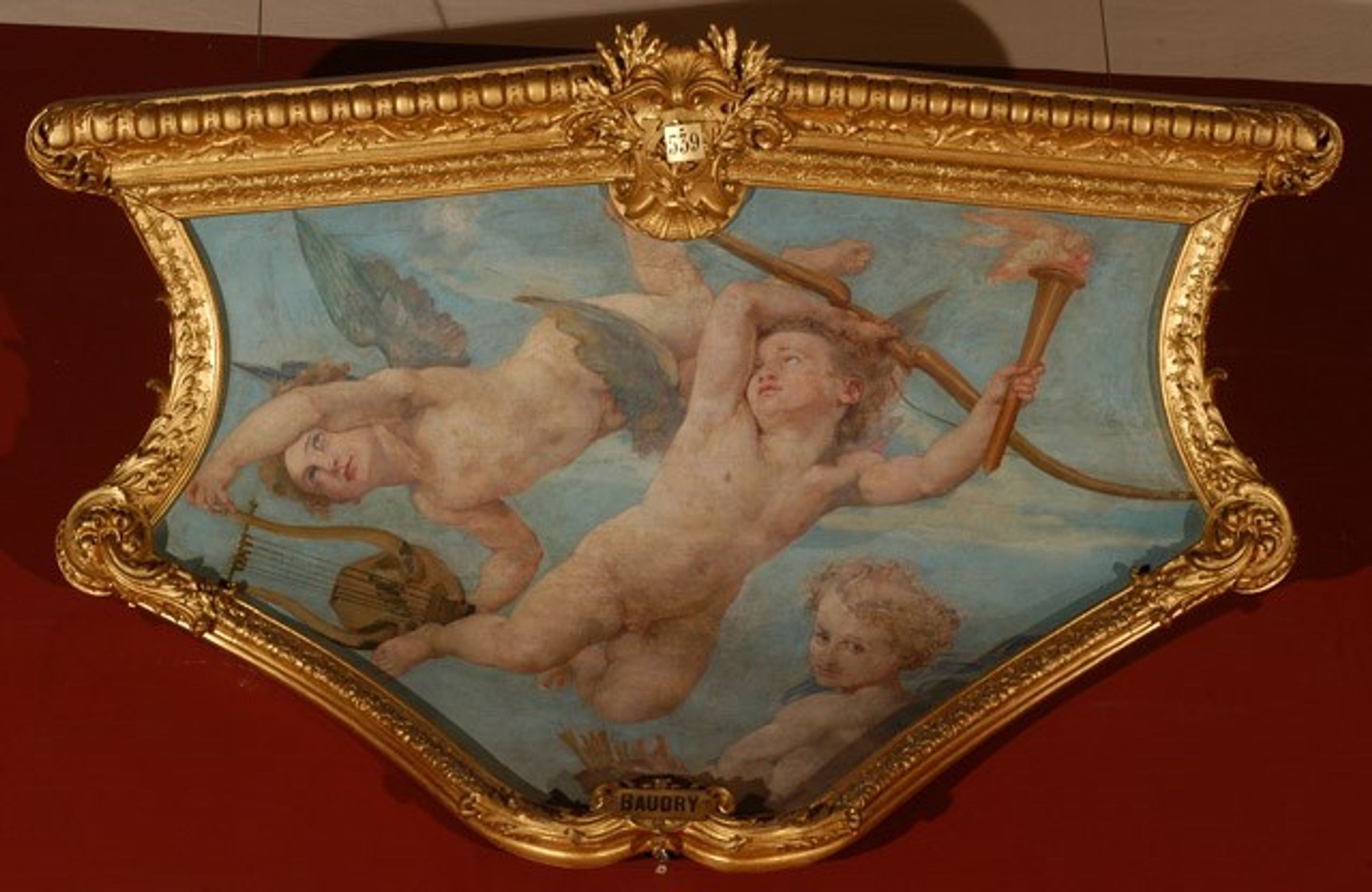 Amours portant les attributs d'Apollon - élément d'ensemble - Voussure