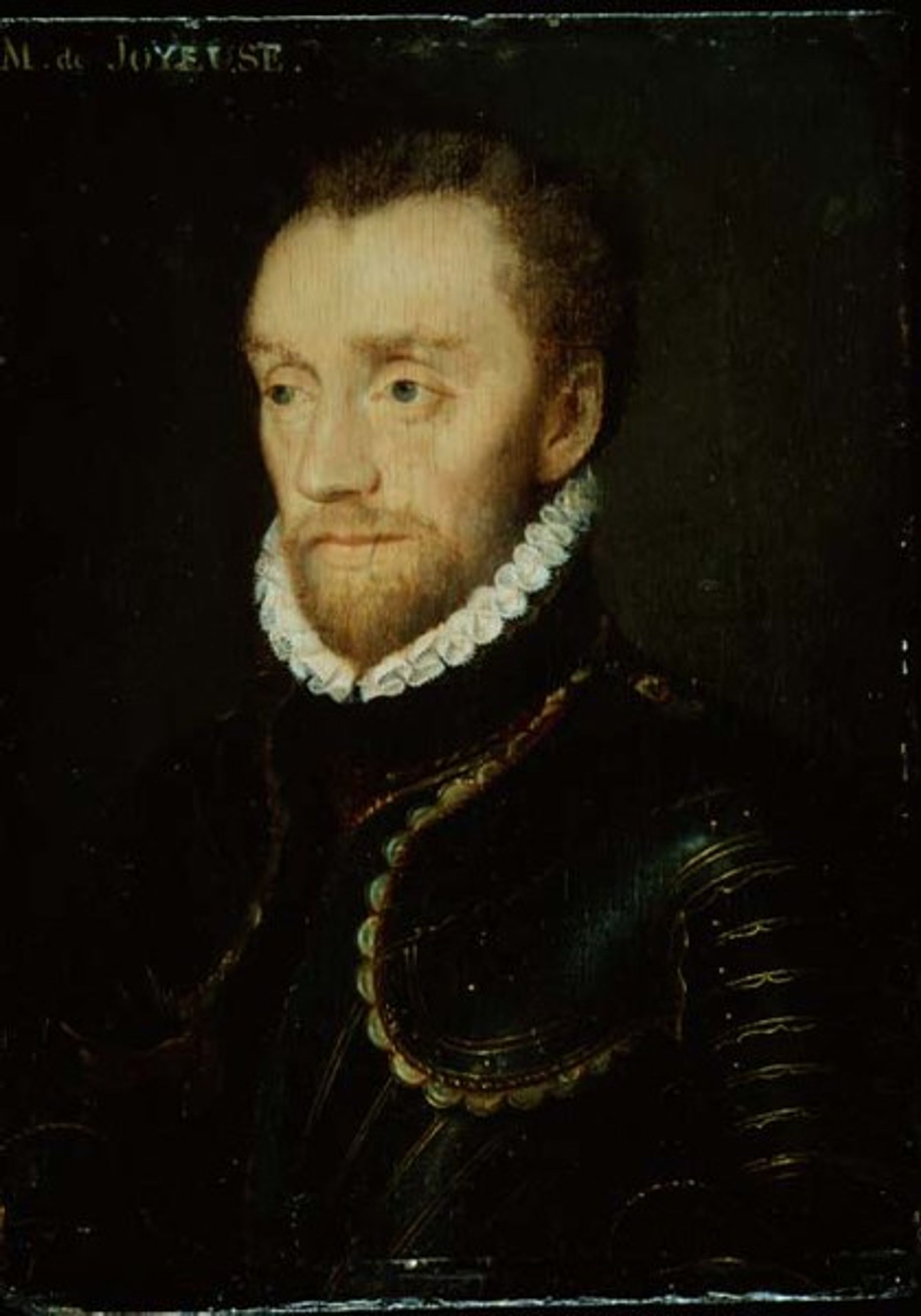 L’annotation tardive portée sur ce tableau, désignant le modèle comme le duc de Joyeuse, favori du roi Henri III, est fallacieuse : par comparaison avec les portraits conservés au château de Versailles (MV 3187), dans une collection particulière (Sotheby’s Londres, 4 décembre 2014, lot 105) ou certaines gravures (comme celle de Thomas de Leu : BNF, Est., Rés. QB-201 (8)-Fol, p. 68), il faut ici reconnaître Louis, premier prince de Condé. Le frère cadet d’Antoine de Navarre, rallié à la Réforme, entra en rébellion contre le pouvoir royal qui ne lui octroyait pas les charges auxquelles il avait droit en tant que prince.