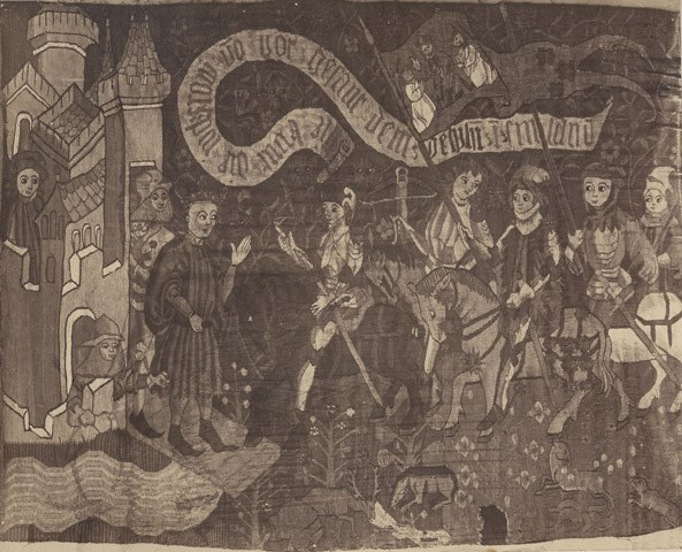 Tapisserie représentant Jeanne d'Arc, trouvée à Lausanne par le M.s d'Azeglio, provenant sans doute du butin fait à Morat