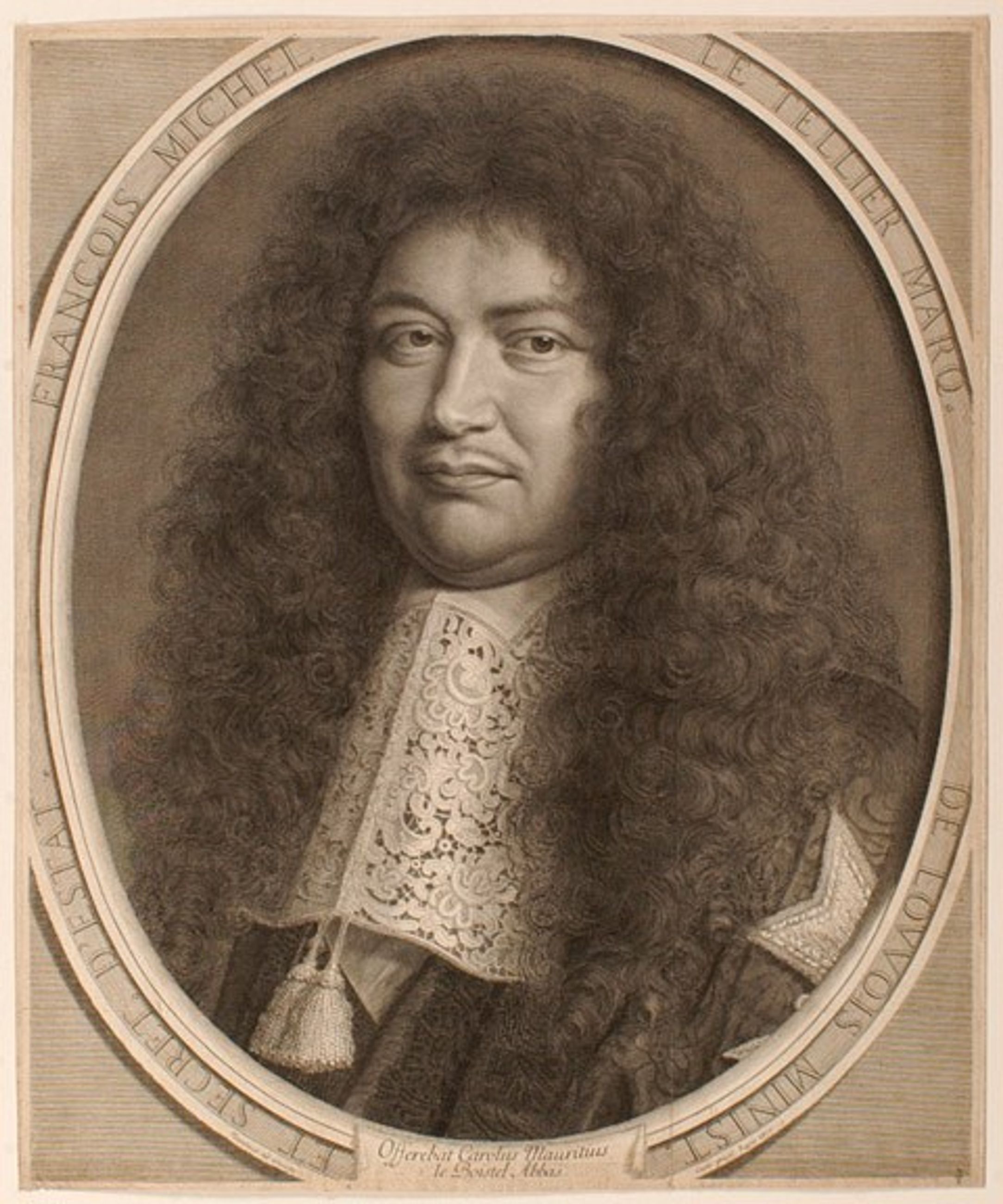Inscriptions autour du portrait ovale : FRANCOIS MICHEL LE TELLIER MARQ. DE LOVVOIS MINIST.ET SECRET D’ESTAT. En dessous : Offerebat Carolus Mauritius / le Boistel Abbas. Dans l’ovale en bas à droite : D. Au verso, au crayon : appendice et non décrit / 7e état avec la lettre D / 128 / appendice et non décrit / £ 1/15