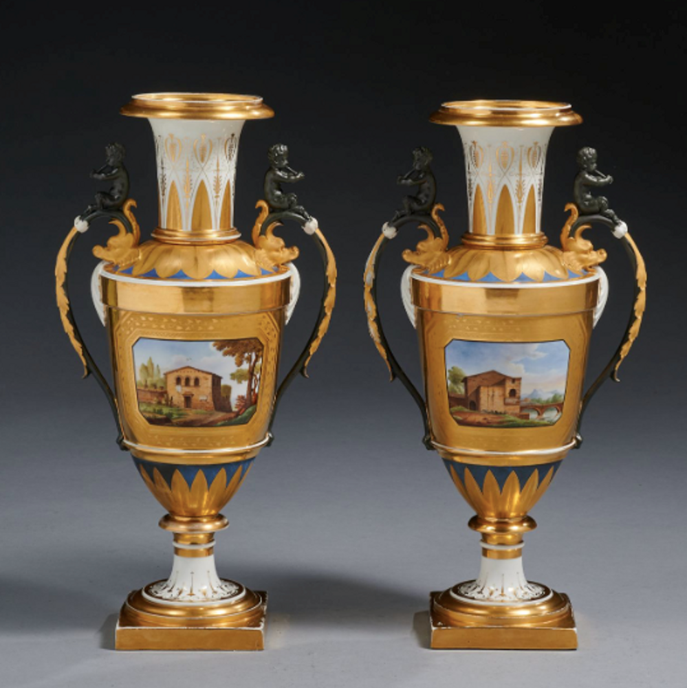 Réalisés en porcelaine dure de Chantilly, ces vases sont issus de la manufacture de Pigory, manufacture créée par le maire de Chantilly, Claude François Pigory, qui dès 1803 souhaitait renouer avec le prestigieux passé porcelainier de la ville.